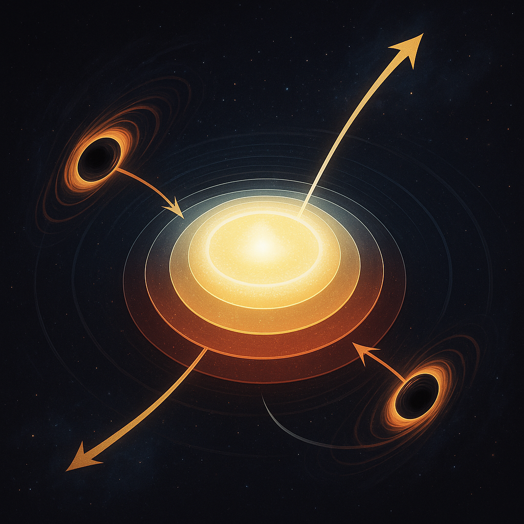 Au cours des derniers mois, j’ai proposé une nouvelle manière de comprendre les fusions de trous noirs binaires : une loi universelle, appelée loi 1/3π, qui relie directement les masses initiales d’un système binaire à la masse finale du trou noir formé après la fusion.